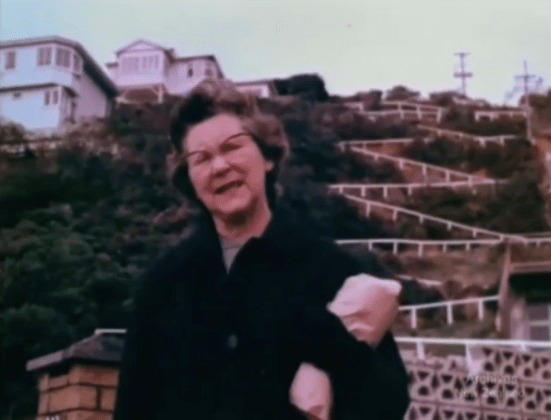 Wellington in 1966 – ‘Those hills. And all those steps,’ is the comment of a weary woman standing in front of the Dixon Street steps. And that hill-side is nearly free of trees and shrubs in 1966, and the flights are visible.