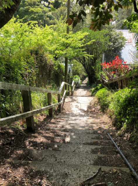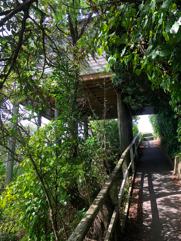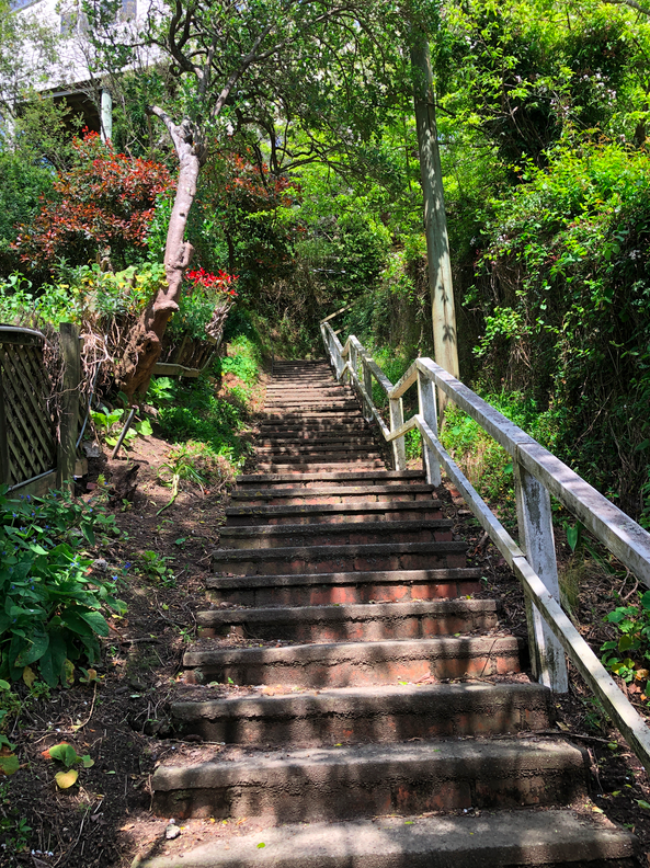 These steps are unusual – the pathway to the second level of steps from the top street passes under a house!
